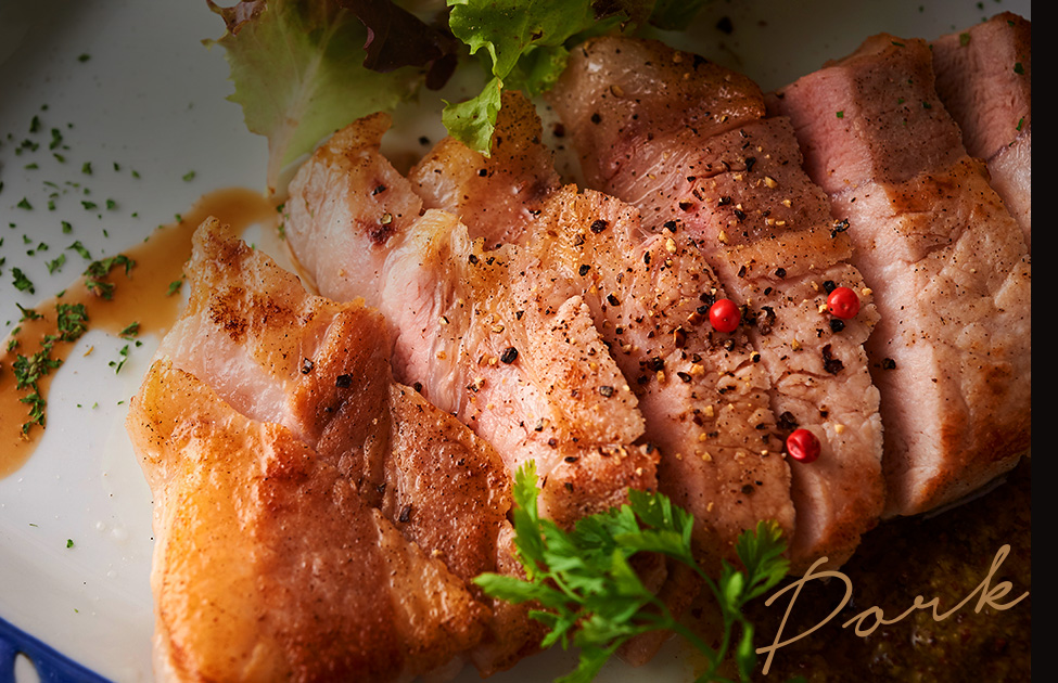 - 豚肉は、「奥利根もち豚」を使用。オーナーの故郷、沼田市で生産される銘柄豚です。鮮やかなピンク色の赤身は食欲を掻き立て、脂身は弾力のある食感と甘味がありながら、さっぱりとしているのが特徴です。